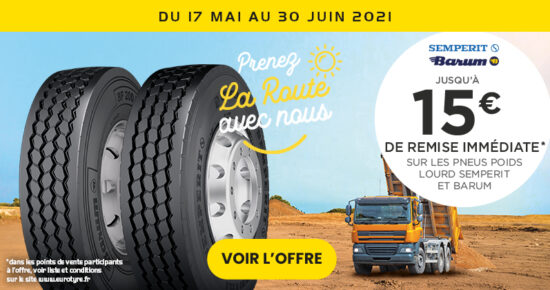 Du 17 Mai au 30 Juin 2021, pour l’achat de pneumatiques Poids Lourd de marque Semperit ou Barum, profitez d’une […]